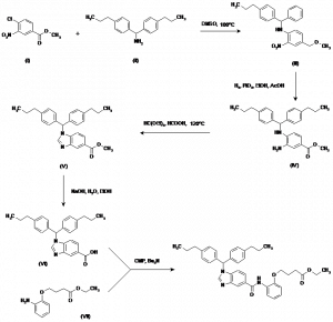4-[2-[1-[bis(4-Propylphenyl)methyl]-1H-benzimidazol-5-ylcarboxamido]phenoxy]butyric acid ethyl ester | C39H43N3O4 | |