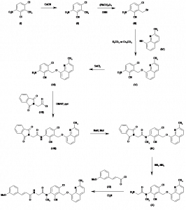 N-[2-[N-[4-Chloro-2-cyano-3-(2-methylquinolin-8-yloxymethyl)phenyl]-N-methylamino]-2-oxoethyl]-3-methoxycinnamamide | 213987-32-7 | C31H27ClN4O4 |