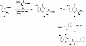 N-[1(S)-(5-Methyl-4-oxo-4H-thieno[2,3-d][1,3]oxazin-2-yl)ethyl]-3-phenyl-2(E)-propenamide | 194352-21-1 | C18H16N2O3S |