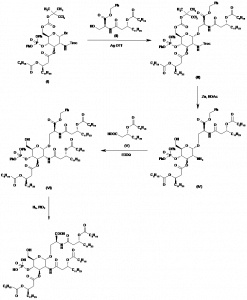(4R,5S,6S,7R)-1,3,4,7-Tetrabenzyl-5,6-dihydroxyhexahydro-1,3-diazepin-2-one | C33H34N2O3 | |