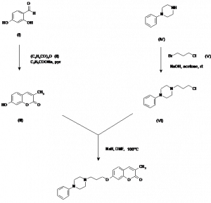 3-Methyl-7-[3-(4-phenyl-1-piperazinyl)propoxy]-2H-benzopyran-2-one hydrochloride | C23H26N2O3.ClH | |