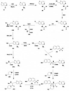 N-[1-[4-Aminothieno[3,2-c]pyridin-2-ylmethyl]-2-(4-methyl-1-piperidinyl)-2-oxoethyl]-7-methoxy-2-naphthalenesulfonamide hydrochloride | C27H30N4O4S2.ClH |