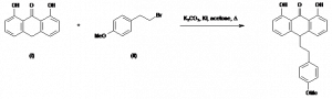 1,8-Dihydroxy-10-[2-(4-methoxyphenyl)ethyl]anthracen-9(10H)-one | C23H20O4 | |