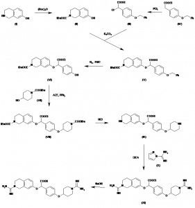 2-(2-Amidino-1,2,3,4-tetrahydroisoquinolin-7-yloxy)-2-[4-(1-amidino-4-piperidinyloxy)phenyl]acetic acid dihydrochloride | 188576-47-8 | C24H30N6O4.2ClH |