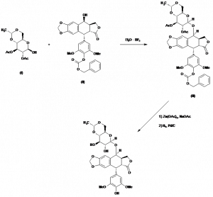 4′-Demethylepipodophyllotoxin 4-(4,6-O-ethylidene-beta-D-glucopyranoside); [5R-[5alpha,5abeta,8aalpha,9beta(R*)]]-9-[(4,6-O-Ethylidene-beta-D-glucopyranosyl)oxy]-5,8,8a,9-tetrahydro-5-(4-hydroxy-3,5-dimethoxyphenyl)furo[3′,4′:6,7]naphtho[2,3-d]-1,3-dioxo |