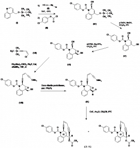(±)-(2R*,5Z,9S*,10S*,16R*)-9-Acetoxy-10,2,10-(epoxymetheno)-1-benz[c]azacyclododeca-5-ene-3,7-diyne-1-carboxylic acid 4-chlorophenyl ester,mixture with (2R*,5Z,9R*,10S*,16R*)-isomer (2:1) |