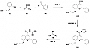 N1-[8-(2-Methoxyethoxy)-2-phenylquinolin-4-ylcarbonyl]guanidine bis(methanesulfonate) | 181048-36-2 (free base); 181049-21-8 (monomethanes | C20H20N4O3.2CH4O3S |