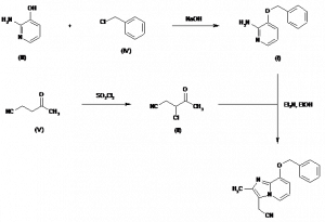 2-Methyl-8-benzyloxyimidazo[1,2-a]pyridine-3-acetonitrile; 2-Methyl-8-(phenylmethoxy)imidazo[1,2-a]pyridine-3-acetonitrile | 076081-98-6 | C17H15N3O |
