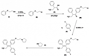 (E)-1-(4-Iodophenyl)-2-phenyl-1-[4-(2-pyrrolidinoethoxy)phenyl]-1-butene; (E)-1-[2-[4-[1-(4-Iodophenyl)-2-phenyl-1-butenyl]phenoxy]ethyl]pyrrolidine | 116057-75-1 | C28H30INO |