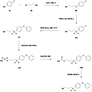 3-(4-Phenylsulfanylphenylsulfonyl)-1-propanethiol | 202665-40-5 | C15H16O2S3 |