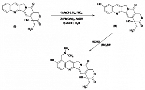 (S)-10-Dimethylaminomethyl-9-hydroxycamptothecin monohydrochloride; (4S)-10-(Dimethylaminomethyl)-4-ethyl-4,9-dihydroxy-3,4,12,14-tetrahydro-1H-pyrano[3′,4′:6,7]indolizino[1,2-b]quinoline-3,14-dione monohydrochloride | 119413-54-6; 123948-88-9 (acetate salt); 123948-87 | C23H23N3O5.ClH |