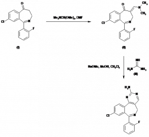 9-Chloro-7-(2-fluorophenyl)-5H-pyrimido[5,4-d][2]benzazepin-2-amine | 076988-22-2; 076988-23-3 (diHCl) | C18H12ClFN4 |