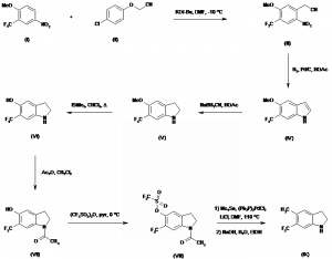 5-Methyl-N-[6-(2-methylpyridin-3-yloxy)pyridin-3-yl]-6-(trifluoromethyl)indoline-1-carboxamide | 200940-22-3 | C22H19F3N4O2 |