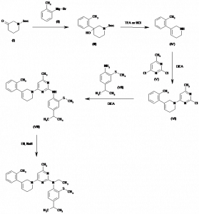 N-Ethyl-N-[4-isopropyl-2-(methylsulfanyl)phenyl]-4-methyl-6-[5-(2-methylphenyl)-1,2,3,6-tetrahydro-1-pyridinyl]pyrimidin-2-amine | C29H36N4S | |