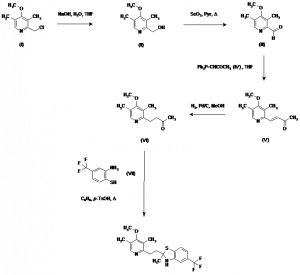 2-[2-(4-Methoxy-3,5-dimethylpyridin-2-yl)ethyl-2-methyl-5-(trifluoromethyl)-2,3-dihydrobenzothiazole | 212779-16-3 | C19H21F3N2OS |