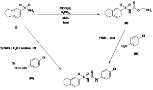 N-(4-Chlorophenylaminocarbonyl)indane-5-sulfonamide; N-(5-Indansulsulfonyl)-N’-(4-chlorophenyl)urea | 110311-27-8 | C16H15ClN2O3S |