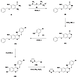 N-(4-Bromo-2-fluorophenyl)-7-[2-(1H-1,2,3-triazol-1-yl)ethoxy]-6-methoxyquinazoline-4-amine hydrochloride | 257938-36-6 | C19H16BrFN6O2.ClH |