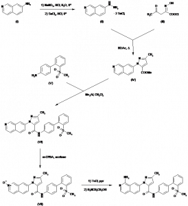 1-(1-Aminoisoquinolin-7-yl)-3-methyl-N-(2′-methylsulfonylbiphenyl-4-yl)-1H-pyrazole-5-carboxamide | 218297-85-9; 218299-32-2 (methanesulfonate) | C27H23N5O3S |
