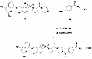 4-[4-[1-[2,4-Dichloro-3-(2,4-dimethylquinolin-8-yloxymethyl)phenylsulfonyl]pyrrolidin-2(S)-ylcarbonyl]piperazin-1-ylcarbonyl]benzamidine dihydrochloride | 202720-59-0; 202602-34-4 (free base) | C35H36Cl2N6O5S.2ClH |
