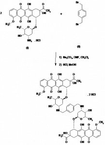 N,N’-Phenylenebis(methylene)bis(daunomycin) dihydrochloride | 192708-87-5; 186131-38-4 (free base) | C62H64N2O20.2ClH |