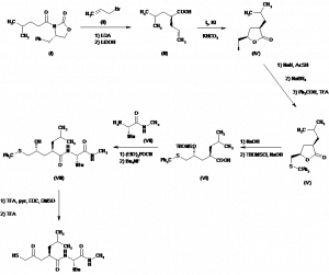 N-[2,2-Dimethyl-1(S)-(N-methylcarbamoyl)propyl]-2(R)-isobutyl-4-oxo-5-sulfanylpentanamide | C16H30N2O3S | |
