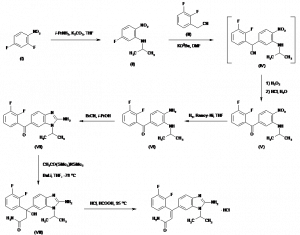 3-(2-Amino-1-isopropylbenzimidazol-6-yl)-3-(2,3-difluorophenyl)-2(Z)-propenamide hydrochloride | C19H18F2N4O.ClH | |