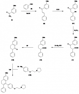 1-[2-[4-(6-Methoxy-2-phenyl-3,4-dihydronaphthalen-1-yl)phenoxy]ethyl]pyrrolidine hydrochloride | C29H31NO2.ClH | |