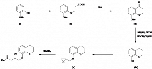 (?)-1-[(3,4-Dihydro-2H-1-benzothiopyran-8-yl)oxy]-3-[(1,1-dimethylethyl)amino]-2-propanol hydrochloride | 033580-30-2; 034784-64-0 (free base) | C16H25NO2S.ClH |