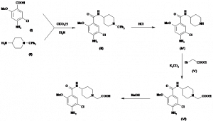 4-(4-Amino-5-chloro-2-methoxybenzamido)piperidine-1-acetic acid | 145727-25-9 (mono HCl salt) | C15H20ClN3O4 |