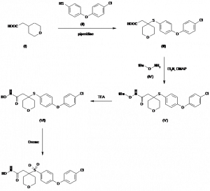 4-[4-(4-Chlorophenoxy)phenylsulfonyl]tetrahydro-2H-pyran-4-acetohydroxamic acid | 193022-21-8 | C19H20ClNO6S |