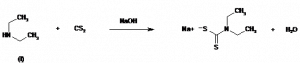 Sodium diethyldithiocarbamate trihydrate; Diethylcarbamodithioic acid sodium salt trihydrate | 000148-18-5 (anhydrous) | C5H10NS2.Na.3H2O |