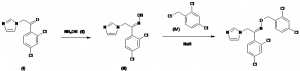 2′,4′-Dichloro-2-(1H-imidazol-1-yl)acetophenone (Z)-[O-(3,4-dichlorobenzyl)oxime] mononitrate; 1-(2,4-Dichlorophenyl)-2-(1H-imidazol-1-yl)ethanone (Z)-O-[(2,4-dichlorophenyl)methyl]oxime mononitrate | 064211-46-7; 064211-45-6 (free base) | C18H13Cl4N3O.HNO3 |