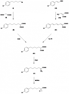 Ethyl 2-[5-(4-chlorophenyl)pentyl]oxirane-2-carboxylate; 2-[5-(4-Chlorophenyl)pentyl]oxiranecarboxylic acid ethyl ester | 078573-55-4; 088431-47-4 (free acid); 078573-70-3 | C16H21ClO3 |