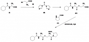 1-[3-[[2(R)-[(Cyclohexylcarbonyl)amino]-1-oxopropyl]thio]-2(S)-methyl-1-oxopropyl]-L-proline calcium salt(2:1) | 085291-53-5; 085856-54-8 (free base) | 2C19H29N2O5S.Ca |