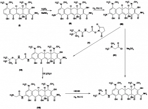 (1S,4aS,11aR,12aS)-1,10-Bis(dimethylamino)-8-[2-(dimethylamino)acetamido]-2,4a,5,7-tetrahydroxy-4,6-dioxo-1,4,4a,6,11,11a,12,12a-octahydronaphthacene-3-carboxamide; 6-Demethyl-6-deoxy-7-(dimethylamino)-9-(N,N-dimethylglycinamido)tetracycline; [4S-(4alph |