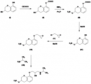 3,4-Dihydro-8-(2-hydroxy-3-isopropylaminopropoxy)-3-nitroxy-2H-1-benzopyran; 3,4-Dihydro-8-[2-hydroxy-3-[(1-methylethyl)amino]propoxy]-2H-1-benzopyran-3-ol 3-nitrate | 081486-22-8 | C15H22N2O6 |