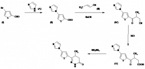 (±)-4,5-Dihydro-6-[4-(1H-imidazol-1-yl)-2-thienyl]-5-methyl-3(2H)-pyridazinone | 090697-57-7 | C12H12N4OS |