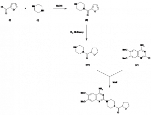 1-(4-Amino-6,7-dimethoxy-2-quinazolinyl)-4-[(tetrahydro-2-furanyl)carbonyl]piperazine monohydrochloride dihydrate | 070024-40-7; 063074-08-8 (anhydrous); 063590-64-7 | C19H25N5O4.ClH.2H2O |