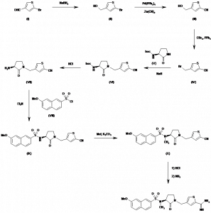 4-[3(S)-(7-Methoxy-N-methylnaphthalen-2-ylsulfonamido)-2-oxopyrrolidin-1-ylmethyl]thiophene-2-carboxamidine | 186549-27-9 | C22H24N4O4S2 |