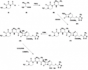 (6R,7S)-7-[(2R,3S)-2-(4-Ethyl-2,3-dioxo-1-piperazinecarboxamido)-3-hydroxybutyramido]-7-methoxy-3-[[(1-methyl-1H-tetrazol-5-yl)thio]methl]-8-oxo-5-thia-1-azabicyclo[4.2.0]oct-2-ene-2-carboxylic acid sodium salt | 076648-01-6; 076610-84-9 (free acid) | C22H28N9O9S2.Na |