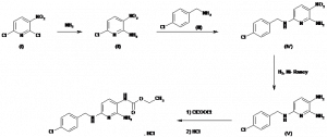 2-Amino-6-[[(4-chlorophenyl)methyl]amino]-3-pyridylcarbamic acid ethyl ester hydrochloride; Ethyl N-[2-amino-6-(4-chlorophenylmethylamino)pyridin-3-yl]carbamate hydrochloride; 2-Amino-3-ethoxycarbonylamino-6-(p-chlorobenzylamino)pyridine hydrochloride | C15H17ClN4O2.ClH | |