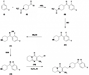 3-[2-[4-(6-Fluoro-1,2-benzisoxazol-3-yl)piperidin-1-yl]ethyl]-2-methyl-6,7,8,9-tetrahydro-4H-pyrido[1,2-a]pyrimidin-4-one | 106266-06-2 | C23H27FN4O2 |