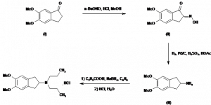 5,6-Dimethoxy-N,N-dipropyl-2,3-dihydro-1H-inden-2-amine hydrochloride | 083598-46-3; 082668-33-5 (free base) | C17H27NO2.ClH |