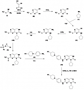 1-Cyclopentyl-7-[4-(4-hydroxypiperidin-1-yl)phenylamino]pyrimido[4,5-d]pyrimidin-2(1H)-one | C22H26N6O2 | |