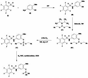 Phosphoric acid 2-methoxy-5-(2,3,4,5,6-pentafluorophenylsulfonamido)phenyl mono ester; 2,3,4,5,6-Pentafluoro-N-[4-methoxy-3-(phosphonooxy)phenyl]benzenesulfonamide |