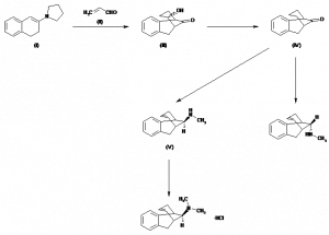 dl-11-anti-Dimethylaminebenzo[b]bicyclo[3.3.1]nona-3,6a(10a)-diene hydrochloride; dl-(5alpha,9alpha,11S*)-5,6,9,10-Tetrahydro-N,N-dimethyl-5,9-methanobenzocycloocten-11-amine hydrochloride | 094725-41-4 | C15H19N.ClH |