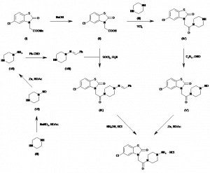 3-(4-Aminopiperazin-1-ylcarbonylmethyl)-5-chlorobenzothiazolin-2-one hydrochloride | C13H15ClN4O2S.ClH |