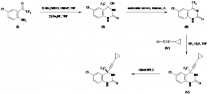 (-)-6-Chloro-4(S)-(2-cyclopropylethynyl)-4-(trifluoromethyl)-3,4-dihydro-1H-quinazolin-2-one | 214287-88-4 | C14H10ClF3N2O |