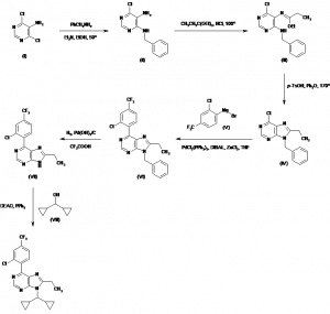 6-[2-Chloro-4-(trifluoromethyl)phenyl]-9-(dicyclopropylmethyl)-8-ethyl-9H-purine | 219733-55-8 | C21H20ClF3N4 |