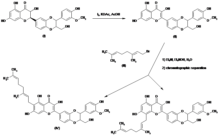 8-[3,7-Dimethyl-2(E),6-octadienyl]-3,5,7-trihydroxy-2-[3-(4-hydroxy-3-methoxyphenyl)-2-(hydroxymethyl)-2,3-dihydro-1,4-benzodioxin-6-yl]-4H-1-benzopyran-4-one |